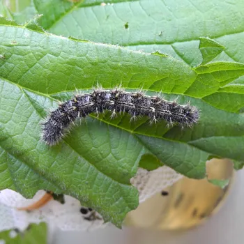 - Raupe vom Tagpfauenauge: Brennnessel, Hopfen