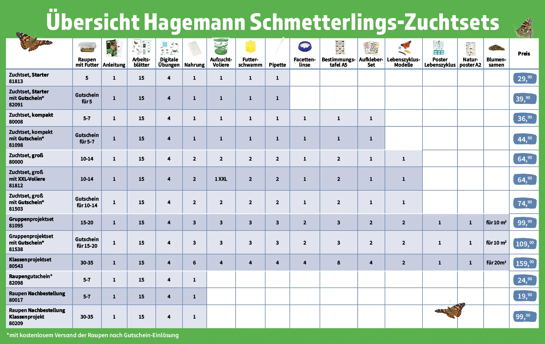 Raupen und das komplette Zubehör zum Züchten von Schmetterlingen (Distelfalter) können Sie direkt in unserem Hagemann Online-Shop kaufen.